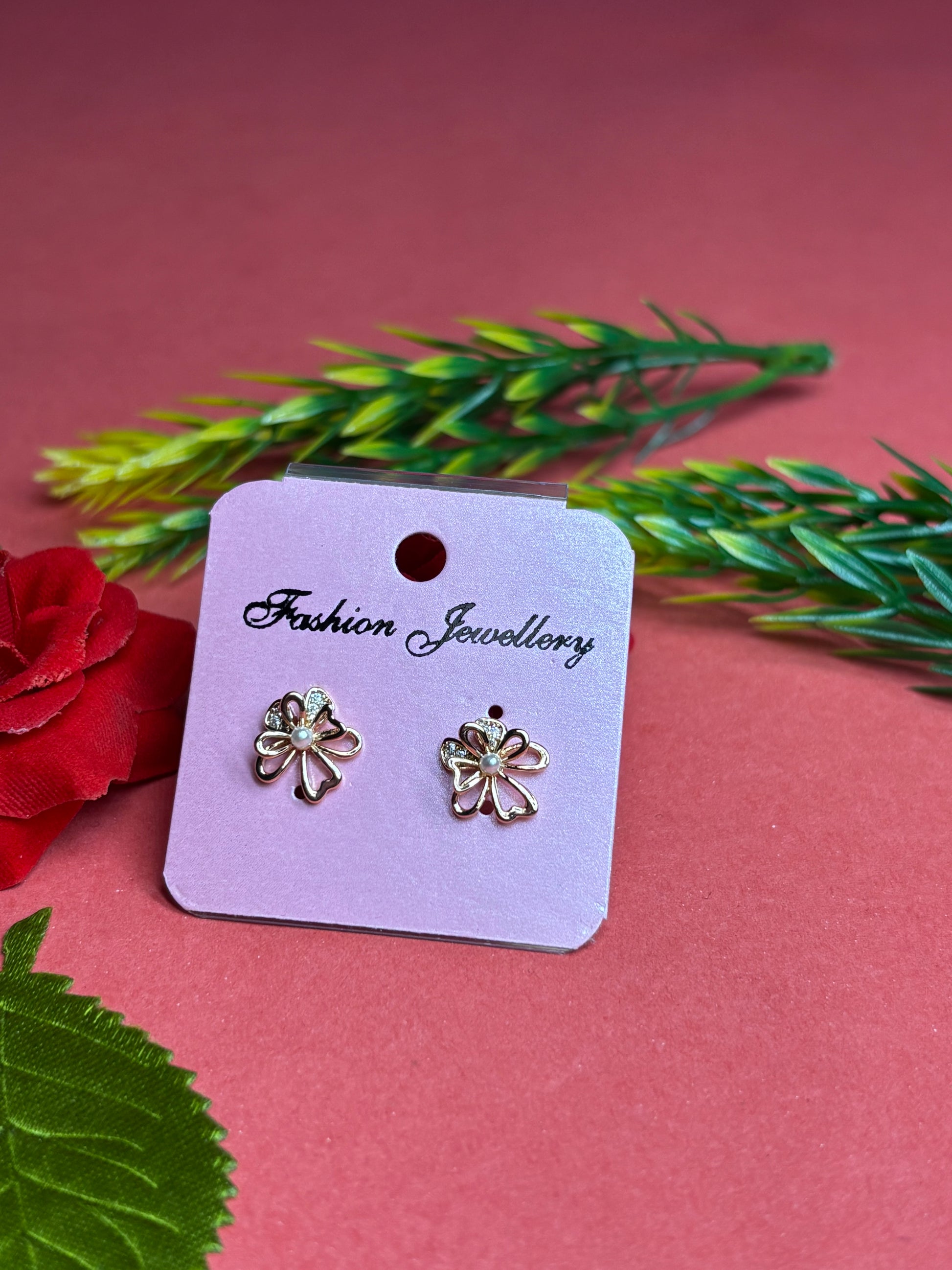 The Blush Bloom Pearl Studs showcase a charming floral design with delicate blush-pink enamel petals outlined in gold. Each flower is adorned with a tiny pearl at the center and accented with subtle crystal detailing on one side for added sparkle. Crafted from stainless steel with an anti-tarnish finish, these earrings are lightweight, durable, and perfect for daily elegance.