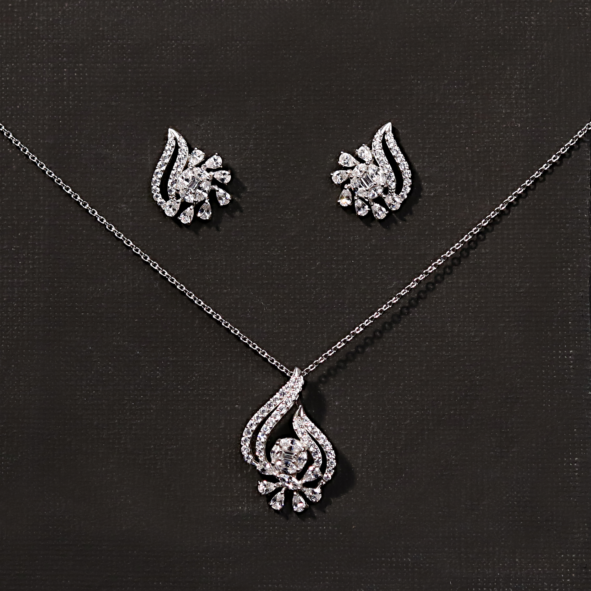 Crafted from premium Sterling 925 silver, this exquisite pendant and earring set by Viqso Jewels is adorned with dazzling cubic zirconia stones. The intricate teardrop design, combined with floral-inspired motifs, adds a refined elegance to any outfit. Perfect for casual or formal occasions, it exudes sophistication and charm.