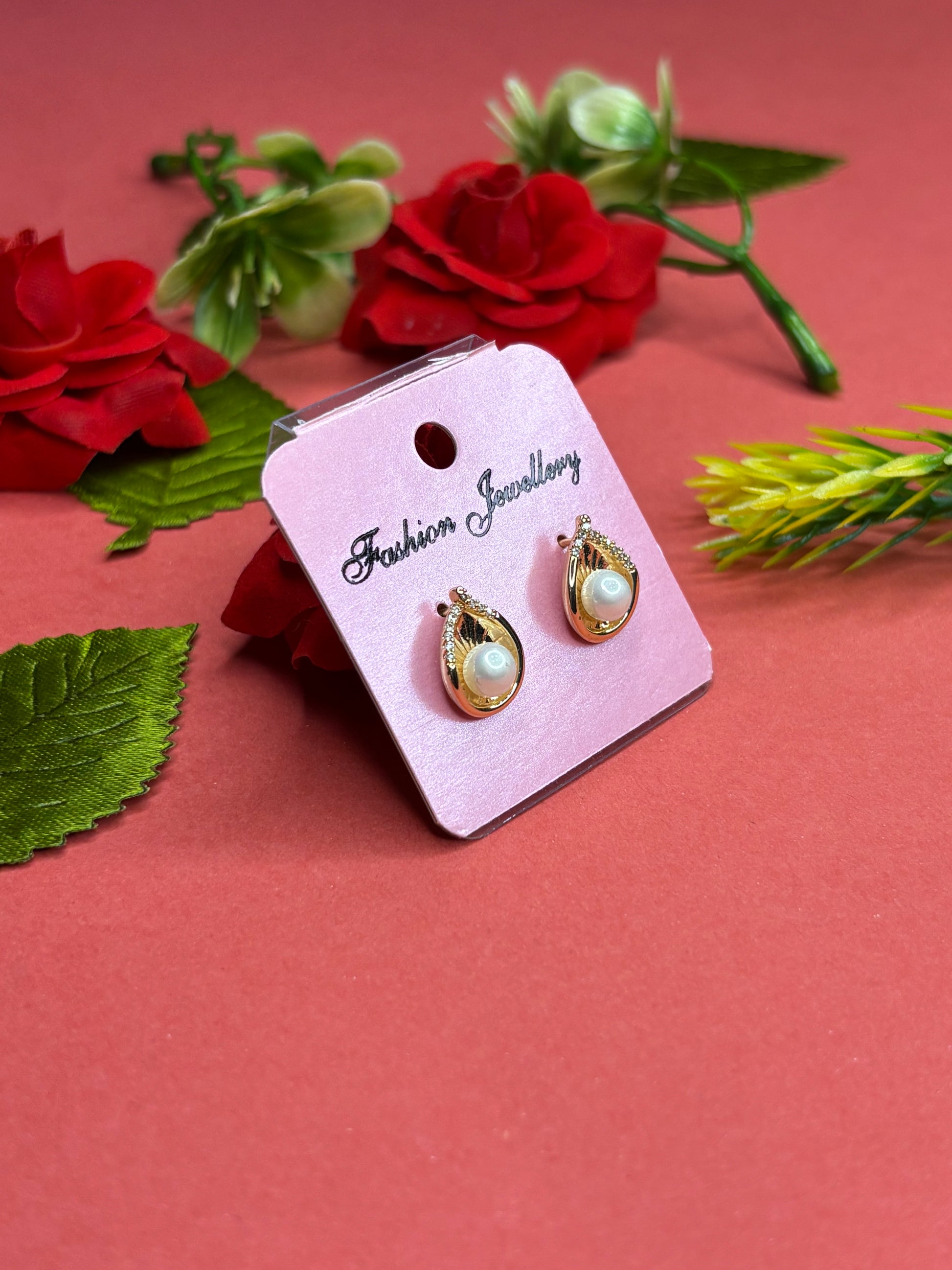 From Viqso’s premium anti-tarnish high-end fashion jewellery line, the Golden Dew Pearl Studs feature a luminous faux pearl nestled in a teardrop-shaped golden frame, accented with delicate stone detailing at the top. Crafted with advanced anti-tarnish technology, these earrings are designed to retain their brilliance and finish for years, offering timeless beauty with modern durability.