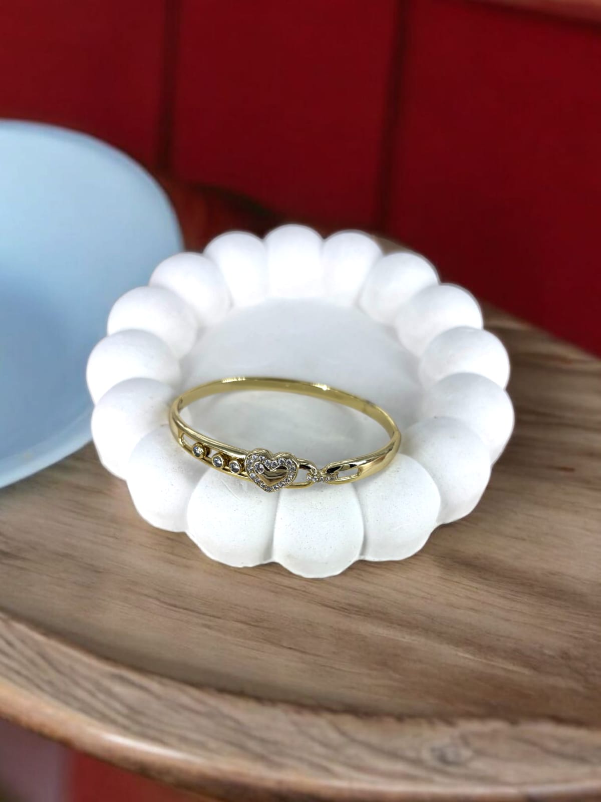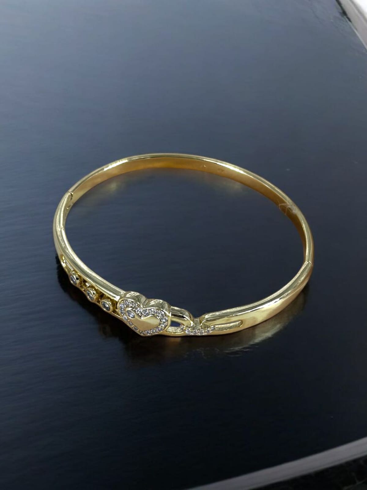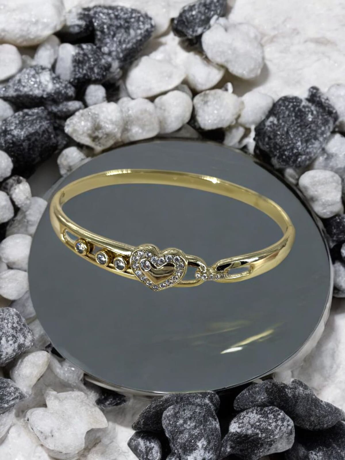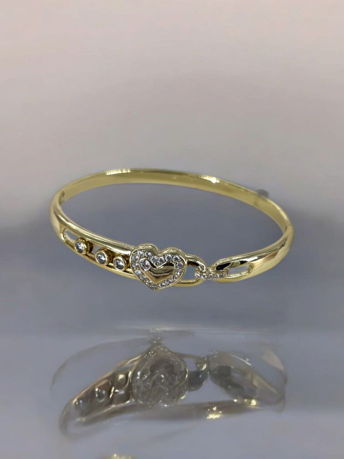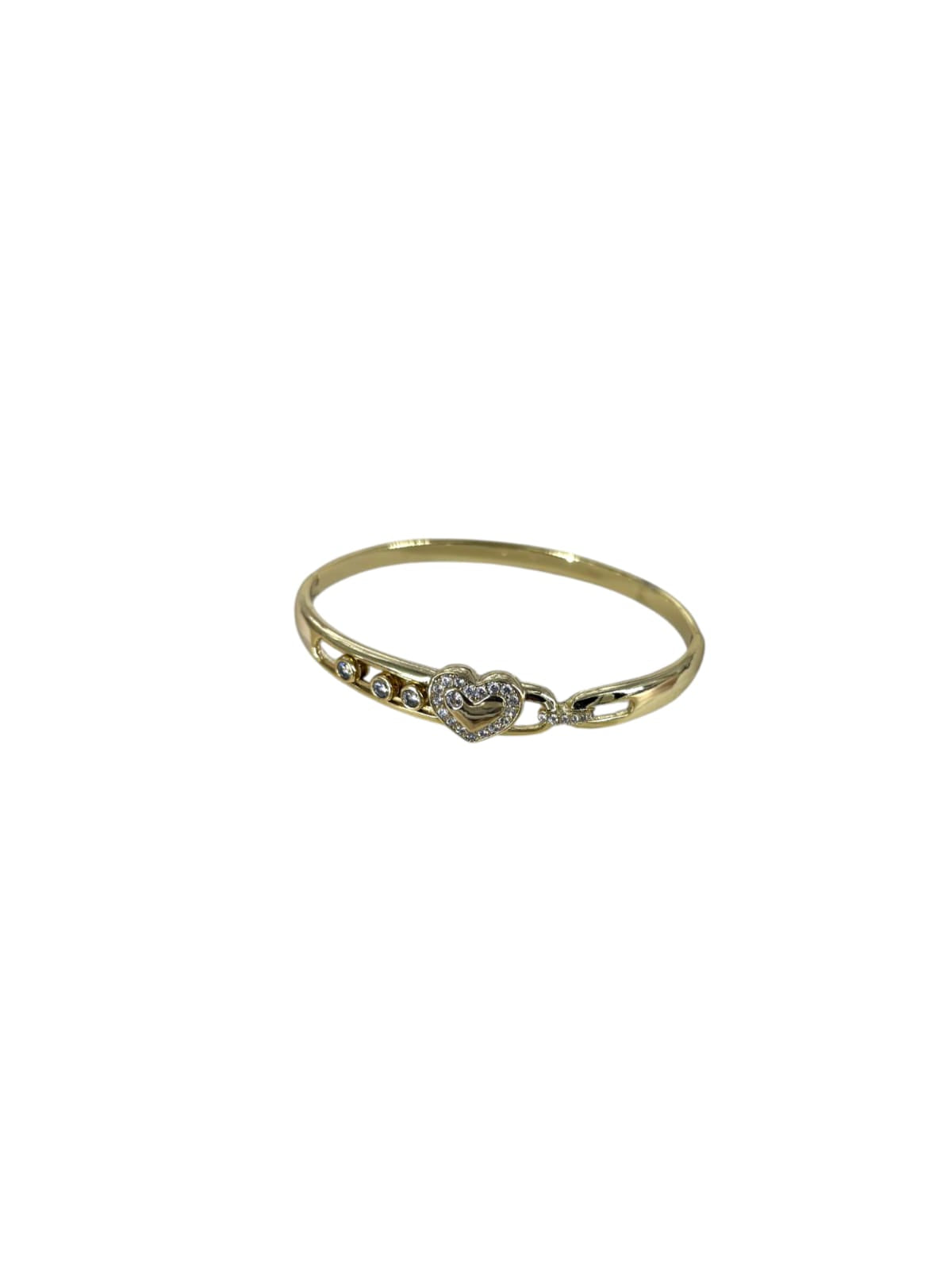 Crafted in high-shine gold-plated stainless steel, this anti-tarnish bangle features a dazzling heart centerpiece embraced by zircon-studded links. Waterproof and skin-friendly – made to last, made to love.