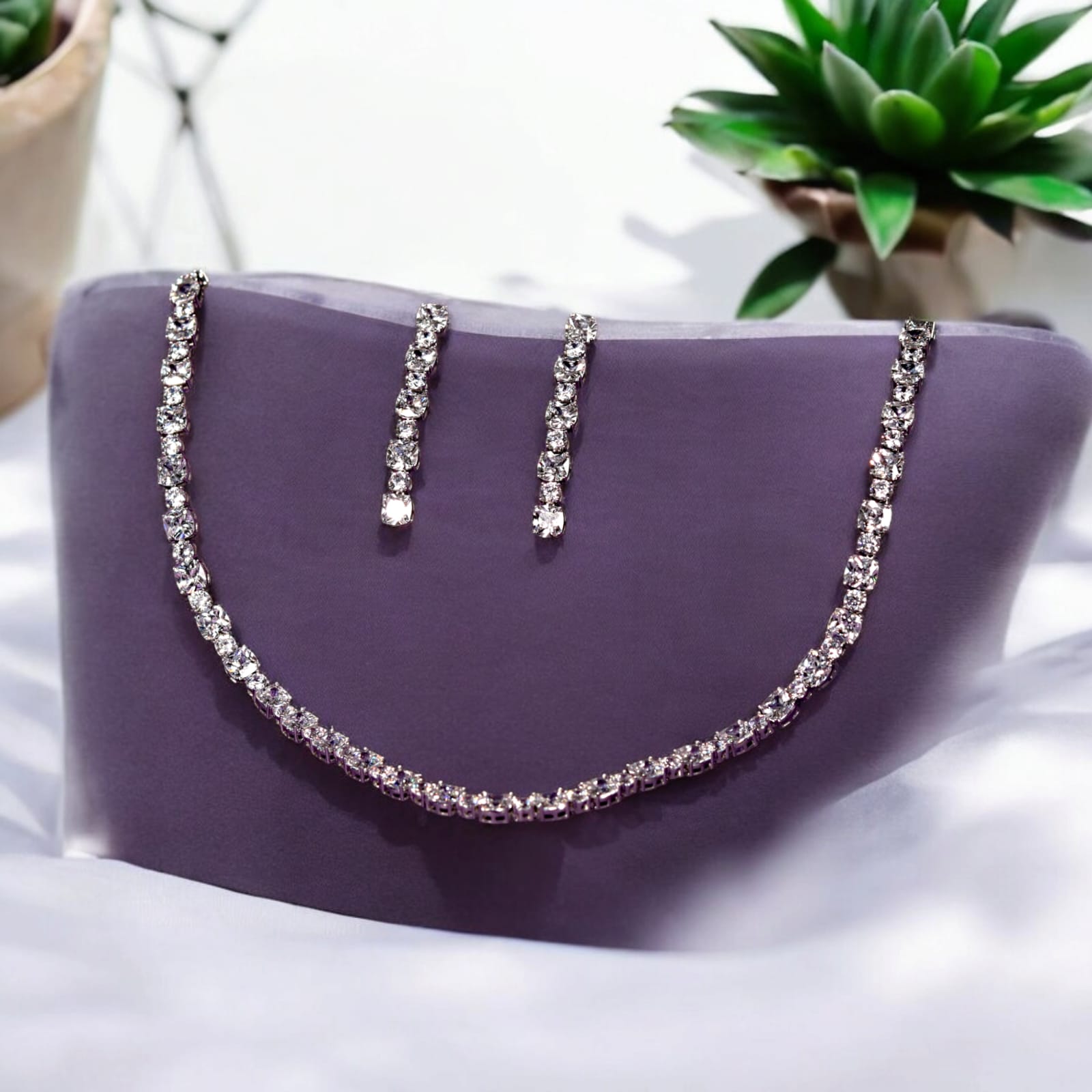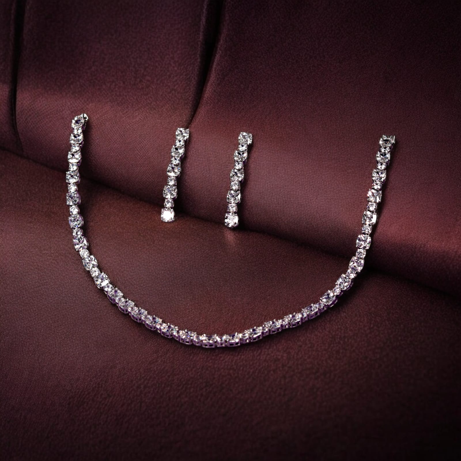 Tennis Necklace and Earring 925 Sterling Silver Set
