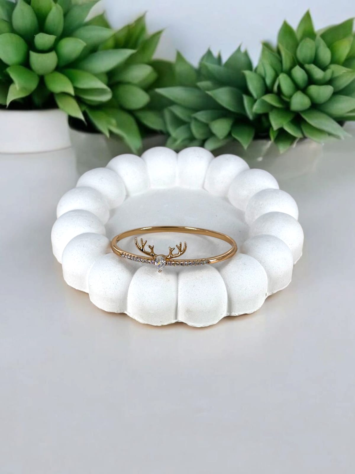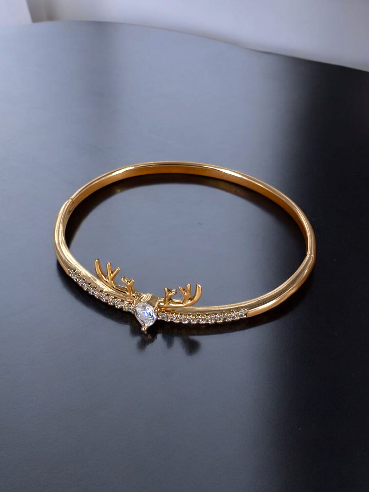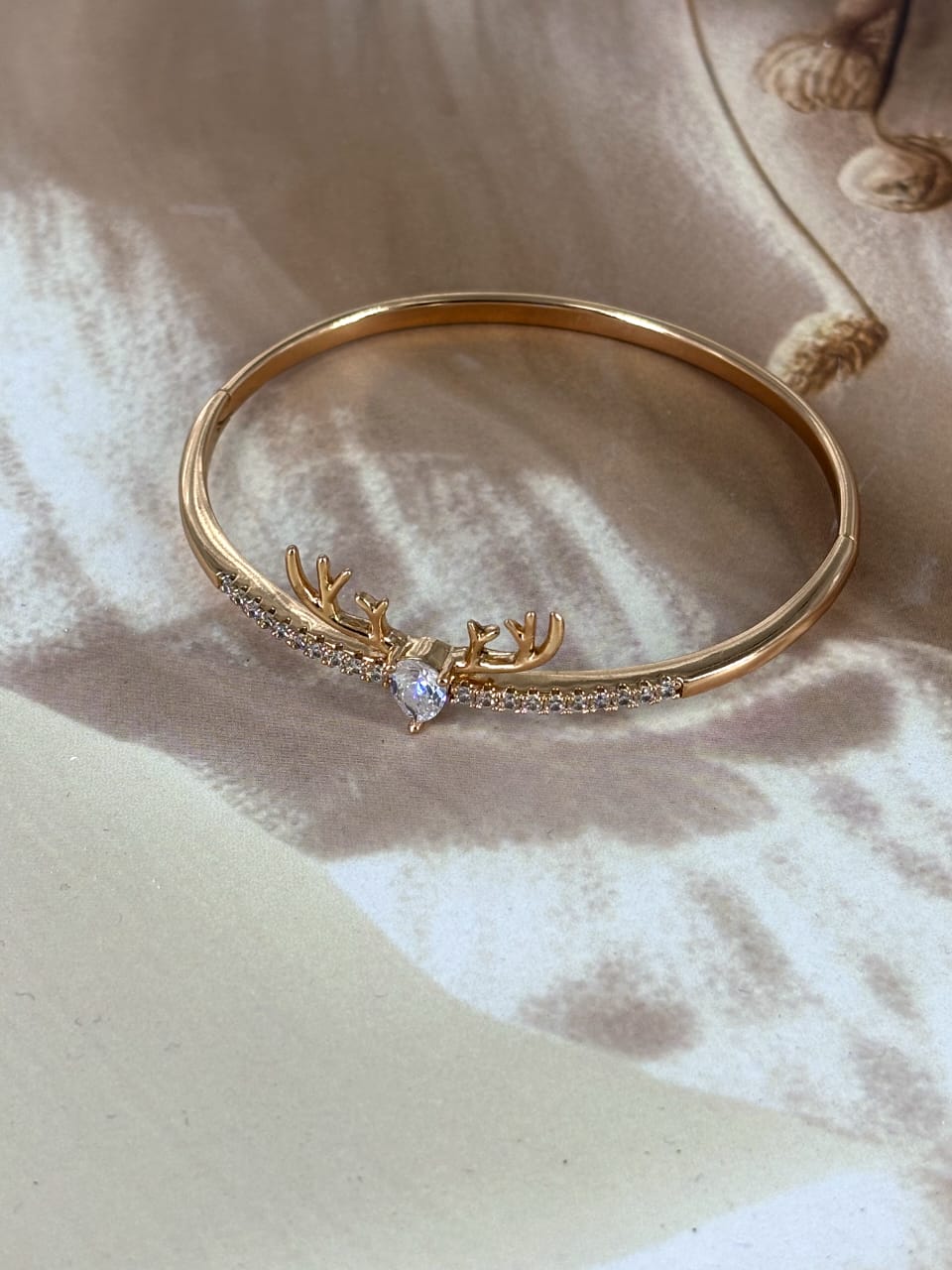 The Viqso Antlera Cuff blends raw elegance with delicate sparkle. This rose gold stainless steel bangle features a unique deer antler motif flanking a central zircon solitaire, set on a sleek band lined with micro-pave stones. Lightweight yet sturdy, it’s your go-to piece for adding a touch of mystical charm to your look.